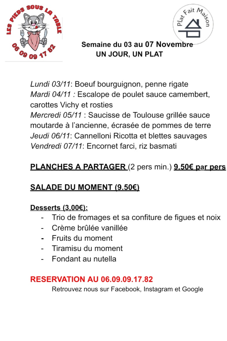 Retrouvez nous également sur facebook ou nous partageons chaque jour une photo du plat réalisés: https://www.facebook.com/lespiedssouslatable.peypin