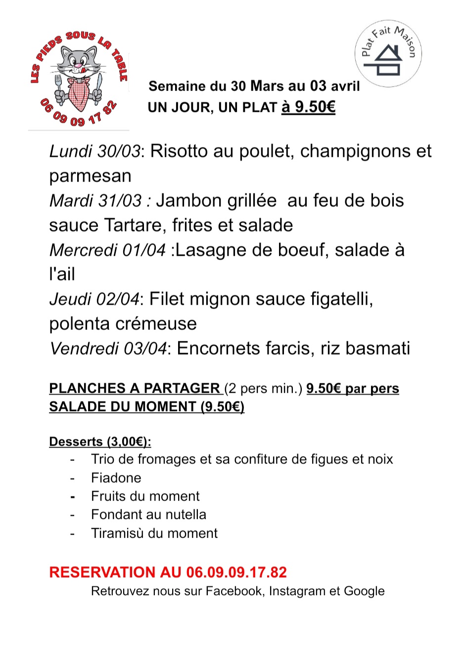 Retrouvez nous également sur facebook ou nous partageons chaque jour une photo du plat réalisés: https://www.facebook.com/lespiedssouslatable.peypin